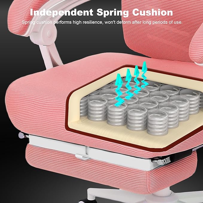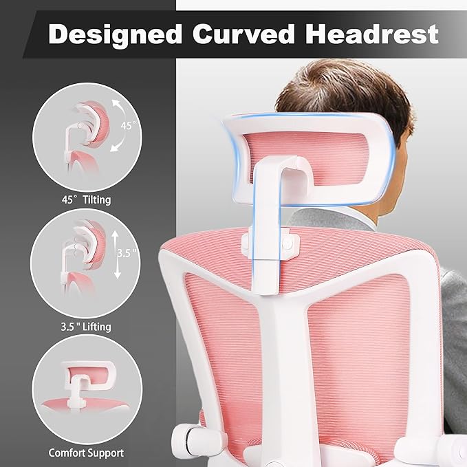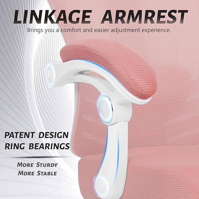 Vonesse Ergonomic Office Chair High Back Computer Mesh Office Chair with Footrest Big and Tall Office Chair Adjustable Home Office Chair Comfy Executive Desk Chair Pink