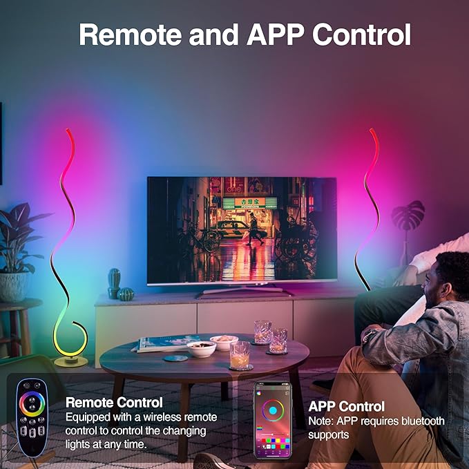 RGB Spiral Floor Lamp, Dimmable LED Floor Lamp with RGBW, Ultra Bright, Modern Standing Tall Lamp with Remote Reading Floor Lamp for Living Room Bedroom Office
