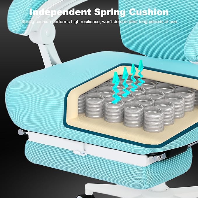 Vonesse Ergonomic Office Chair with Headrest Computer Mesh Office Chair with Footrest Big and Tall Office Chair High Back Comfortable Home Office Chair for Heavy People Desk Chair Teal/Cyan