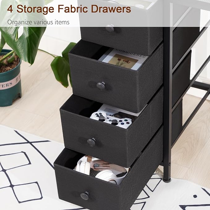 Computer Desk with LED Light & Power Outlets, 47 Inch Gaming Desk with 4 Fabric Drawers, Carbon Fiber Surface Home Office Desk with Monitor Stand with Hooks for Bedroom, HGD12CBK