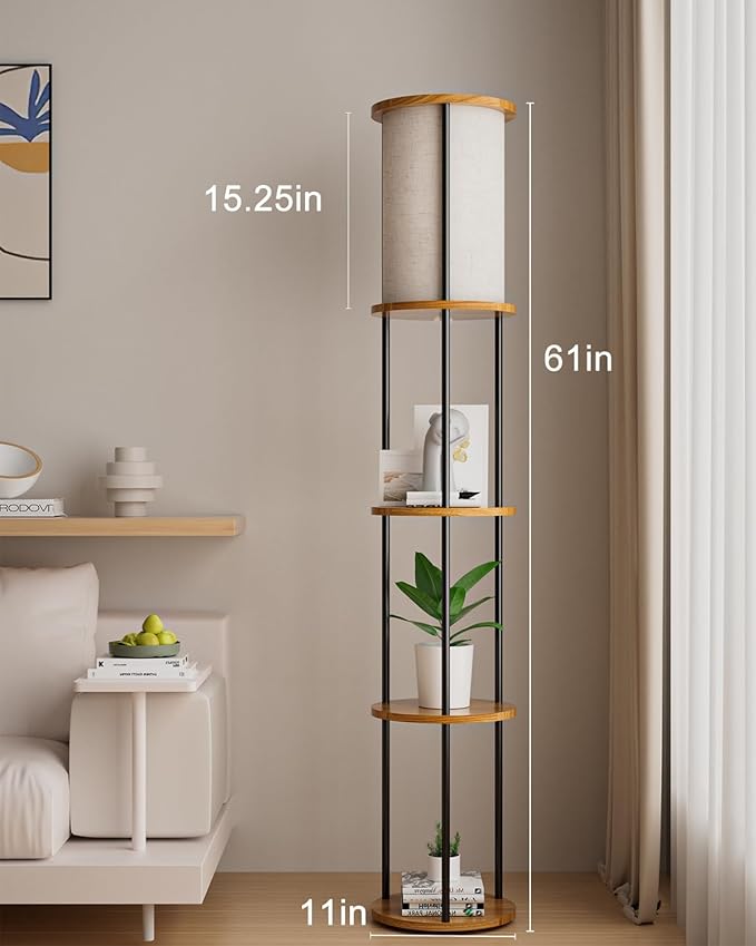 Lightdot 61IN Floor Lamp with Shelves, 3-Tier Storage Black Standing Lamps with 3000K E26 Bulb Included, Display Shelf Floor Lamp for Living Room Sofa Corner