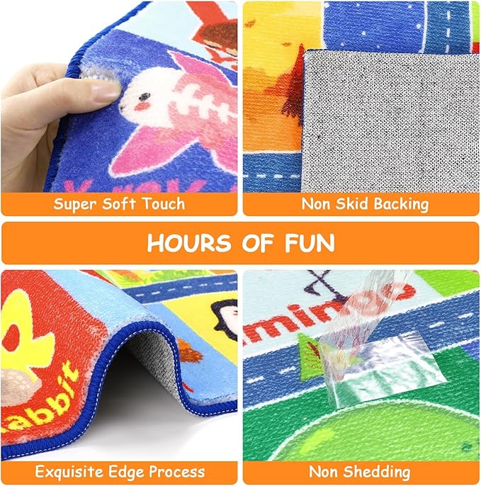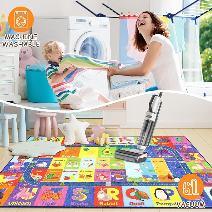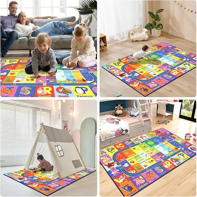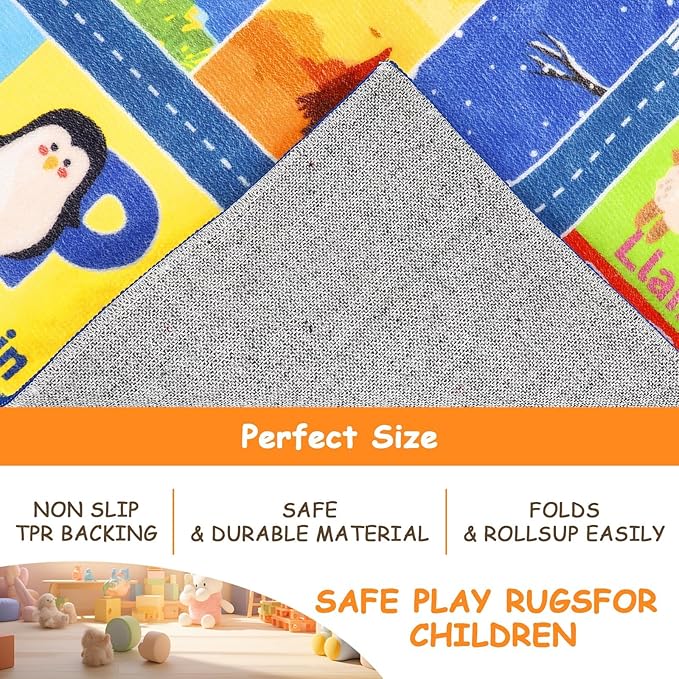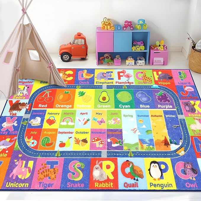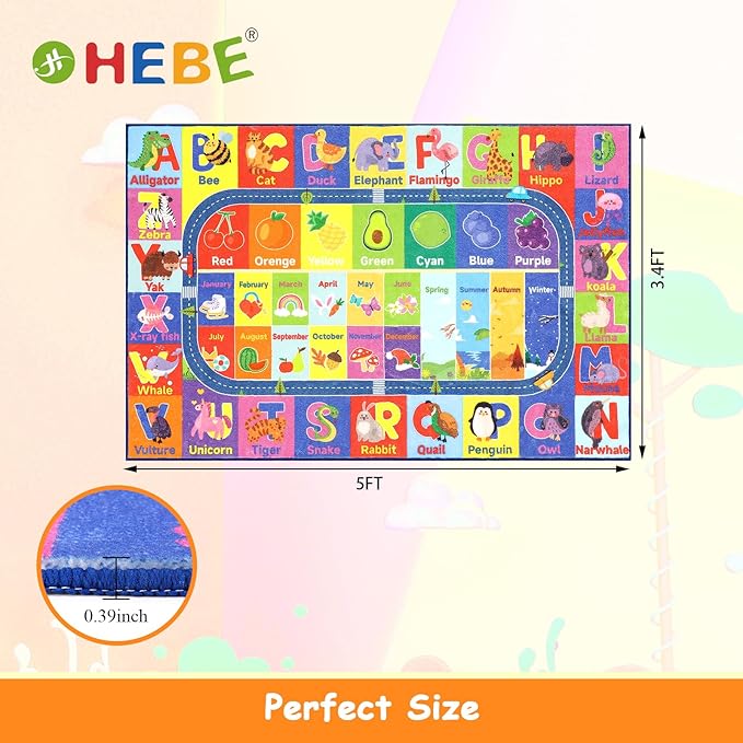 HEBE Kids Play Rug 3'4"x5' ABC Alphabet Numbers Shapes Educational Kid Area Rug Washable Baby Crawling Mat Non Slip Kid Play Mat Carpet for Girl Boy Bedroom Playroom