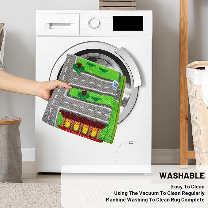About This 🎁PREMIUM QUALITY: Kids car rug is 100% nylon pile surface with non-slip latex Backing. Non-toxic, Non-BPA, and lead-free...
