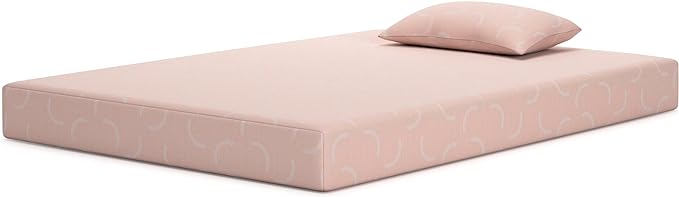 Signature Design by Ashley Full Size iKidz 7 Inch Firm Gel Memory Foam Mattress with Stretch Knit Cover & Pillow Included, Pink Coral