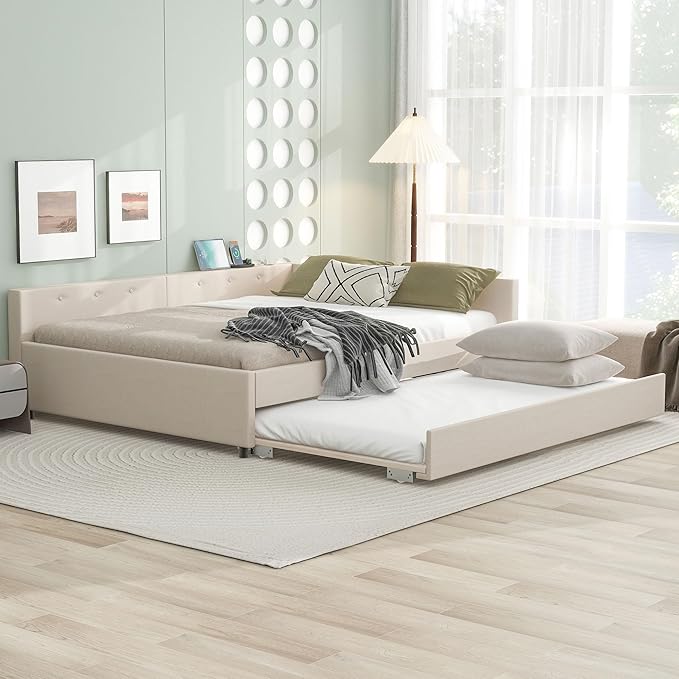 About This Pine Wood+mdf [Modern Upholstered Platform Bed] This design is elegant style upholstered in carefully-selected linen fabric. [USB Ports...