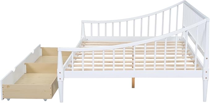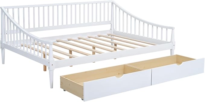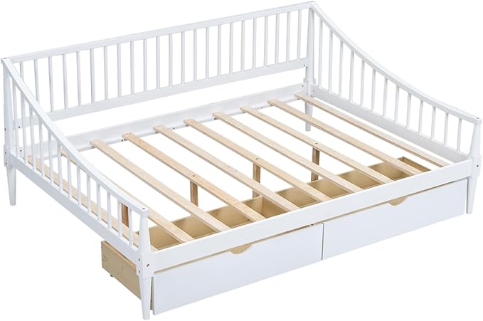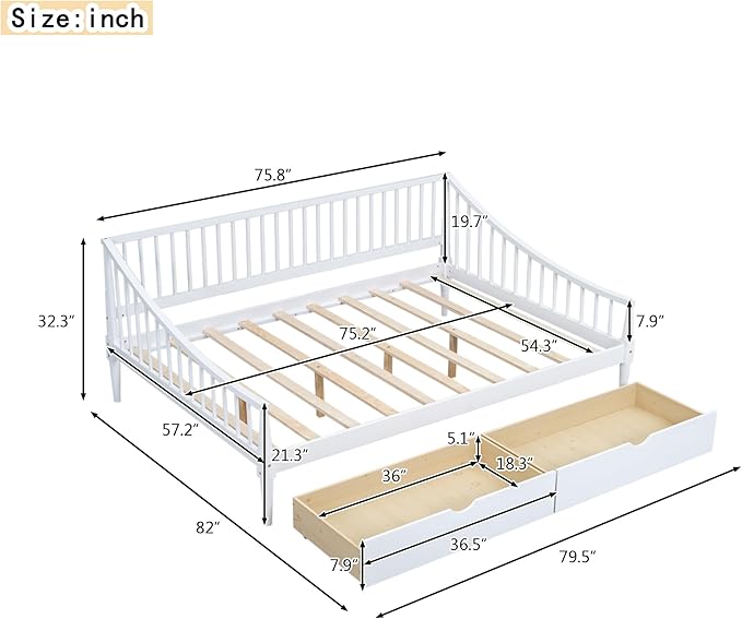 About This Pine Wood+mdf [Storage Drawers] This full daybed frame is designed with 2 large drawers for easy to create...