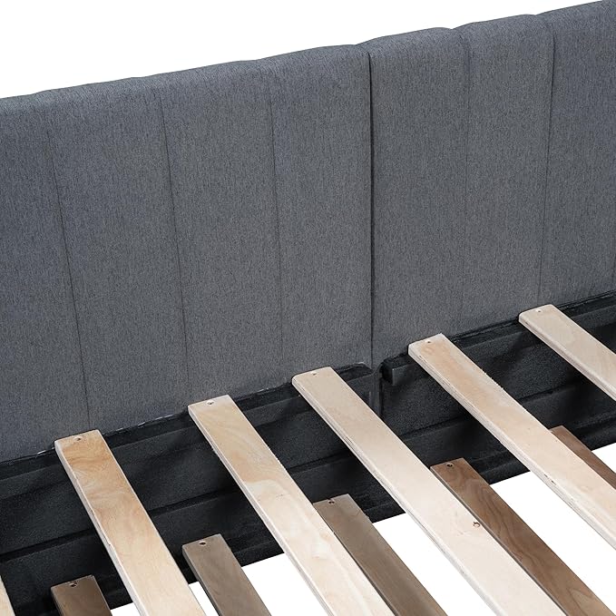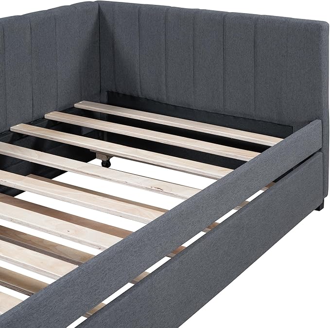Twin Size Upholstered Linen Daybed with 2 Trundle,Semi-Closed Design,Solid Wood Bed Frame,W/Backrest and Slat Support,No Box Spring Needed,for Apartment Bedroom,Gray