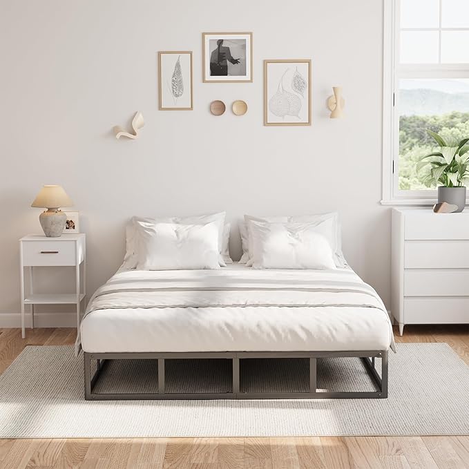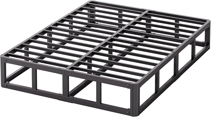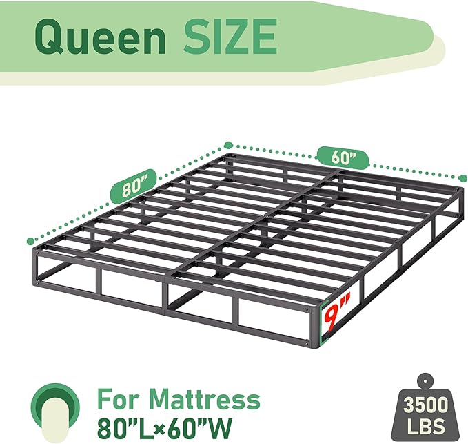 Queen Bed Frame, 9 Inch High Metal Box Spring with More Steel Slats Support, Sturdy Platform Bedframe Low to Floor, 3500 Lbs Weight Capacity Heavy Duty Mattress Base, Easy Assembly, Black