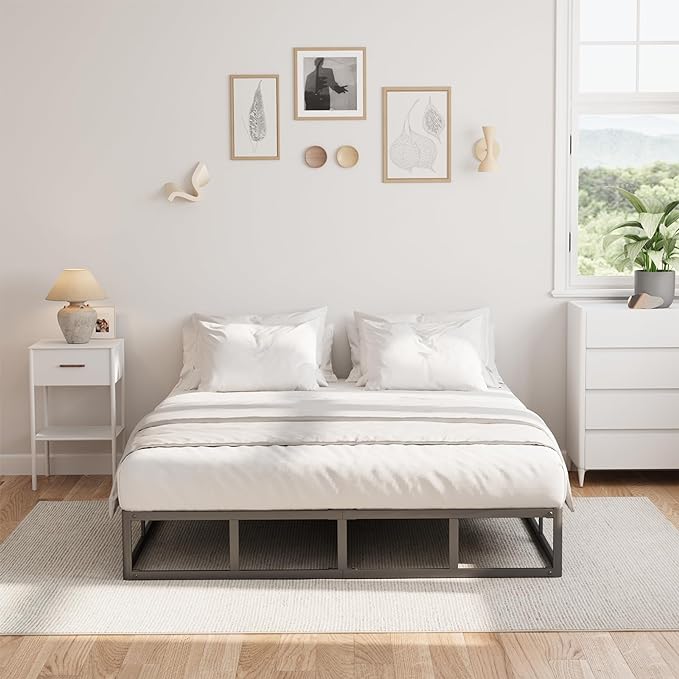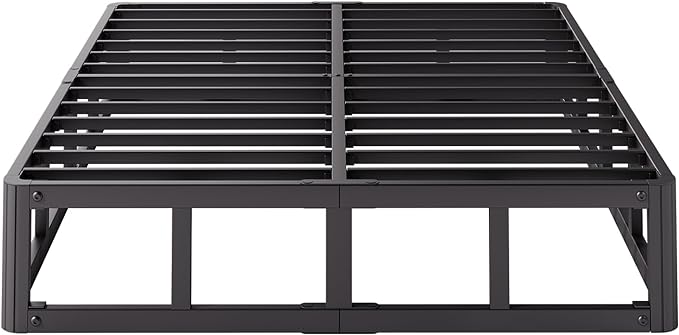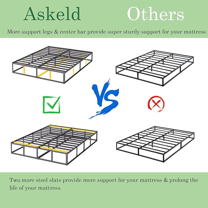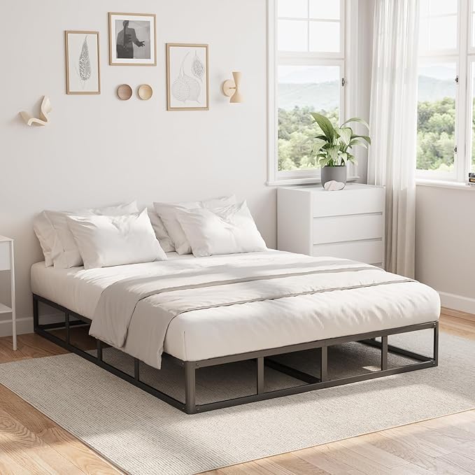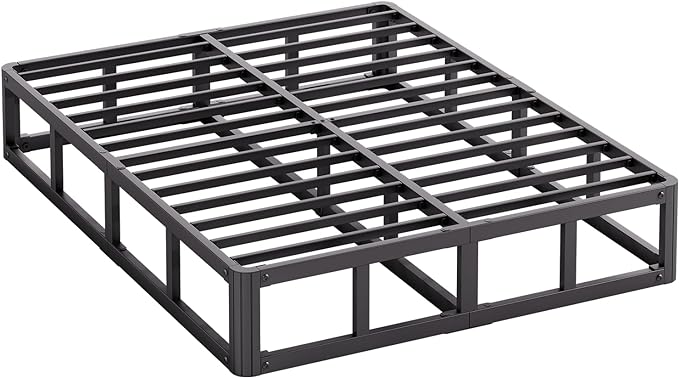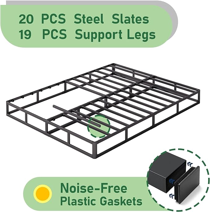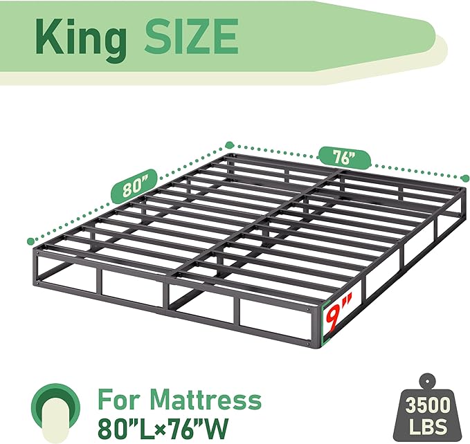 King Bed Frame, 9 Inch High Metal Box Spring with More Steel Slats Support, Sturdy Platform Bedframe Low to Floor, 3500 Lbs Weight Capacity Heavy Duty Mattress Base, Easy Assembly, Black