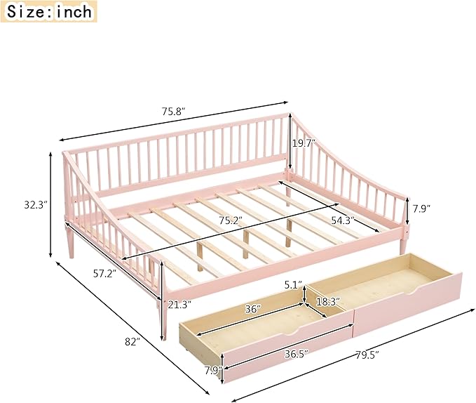 About This Pine Wood+mdf [Storage Drawers] This full daybed frame is designed with 2 large drawers for easy to create...