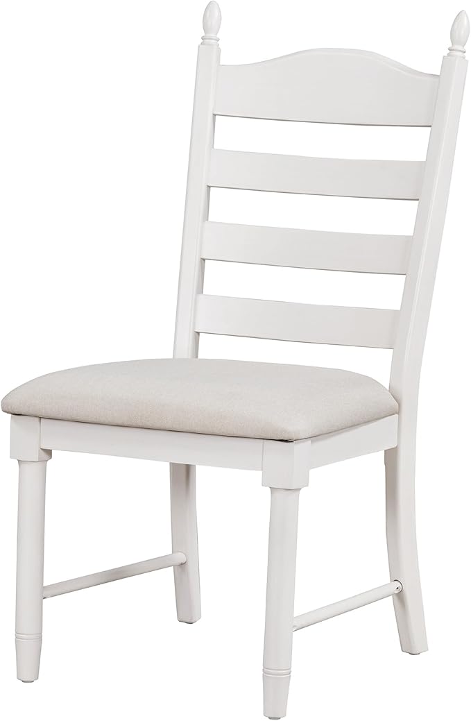 5-Piece Dining, Vintage Round Wood Extendable Table Set with 4 Cushioned Chairs for Living Kitchen Room, Antique White