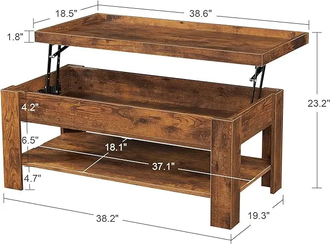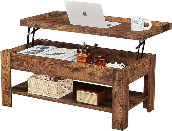 VECELO Lift Top Coffee Table with Storage Shelf and Hidden Compartment for Living Room/Office Reception, Black, Rustic Brown