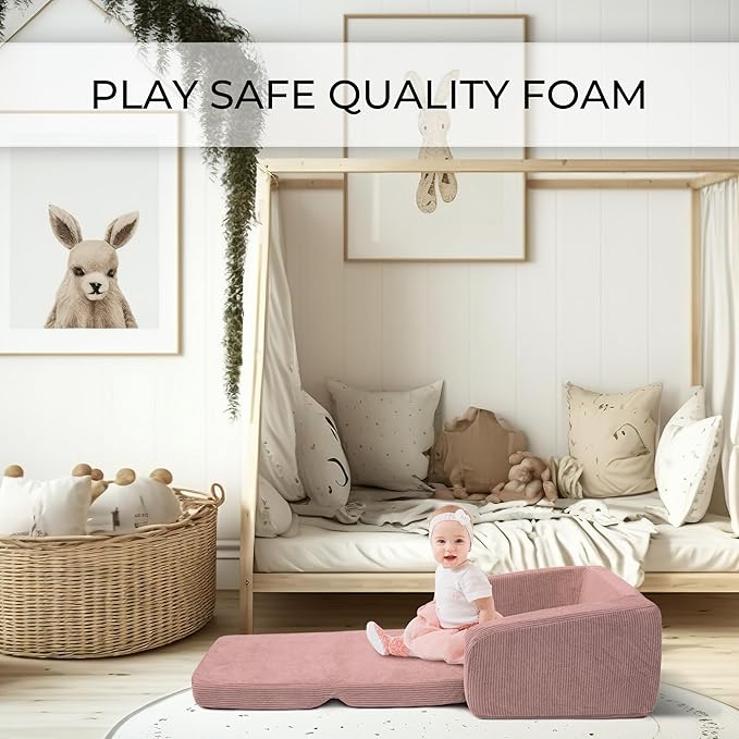 • Stylish 2-in-1 Convertible Feature: Your kids will simply love the kids sofa (recommended age: 18+ months)! Chic in stylish pink, the 22x16.5x15” kids couch delights with its double duty: easily switch from chair into a snug lounge position (22x41x11.5”)