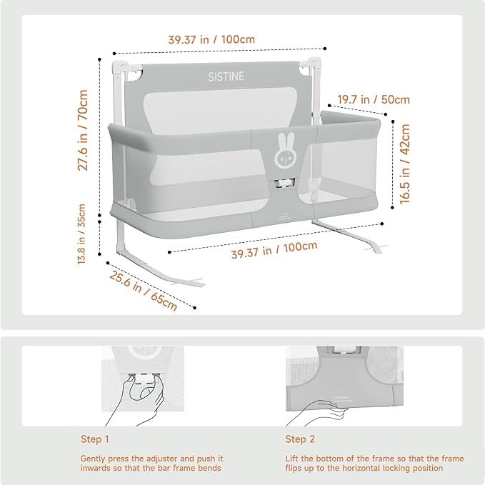 SISTINE Baby Bedside Crib, 3 in 1 Baby Bassinet, Baby bedside bassinet, Safe bedside bassinet,Crib Safe Sleeping Together,Infant/Baby Boy/Baby Girl/Crib Side Bassinet (Gray)