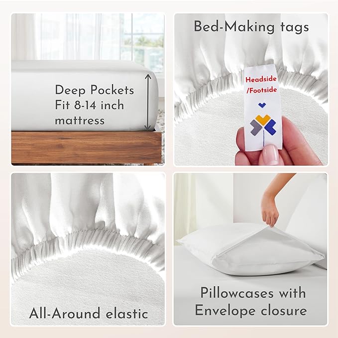 California Design Den Soft 100% Cotton Full Size Bed Sheet with Deep Pocket, 4 Piece Full Sheet Set with Sateen Weave, Cooling Sheets - Ivory