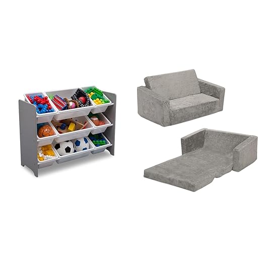 Delta Children MySize 9 Bin Plastic Toy Organizer - Greenguard Gold Certified, Grey & Serta Perfect Extra Wide Convertible Sofa to Lounger, Comfy 2-in-1 Flip Open Couch/Sleeper for Kids, Grey