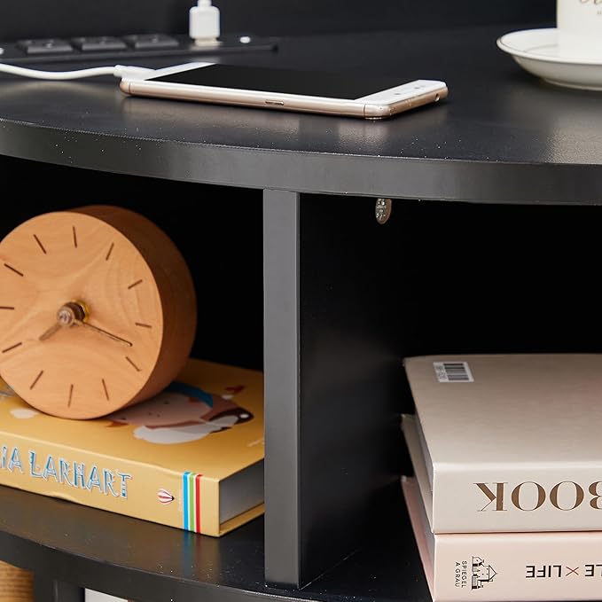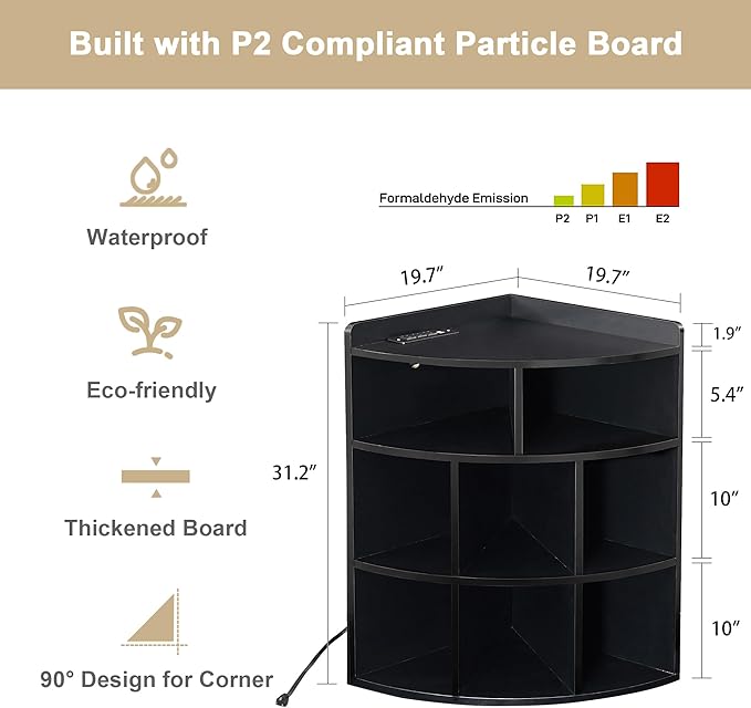 Vecelo 3-Tier Corner Cabinet with USB Outlet, 8 Cubbies Wooden Cube Storage Organizer, Corner Bookshelf Units for Playroom, Bedroom, Living Room, Black