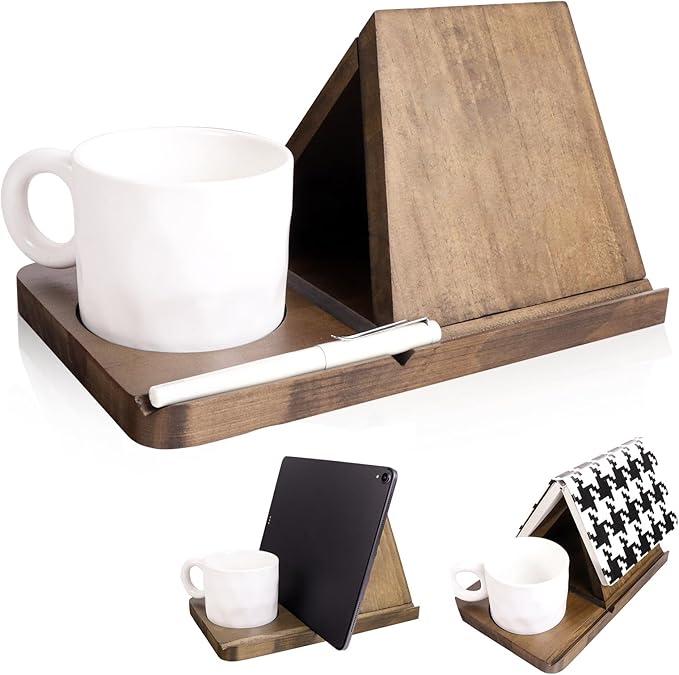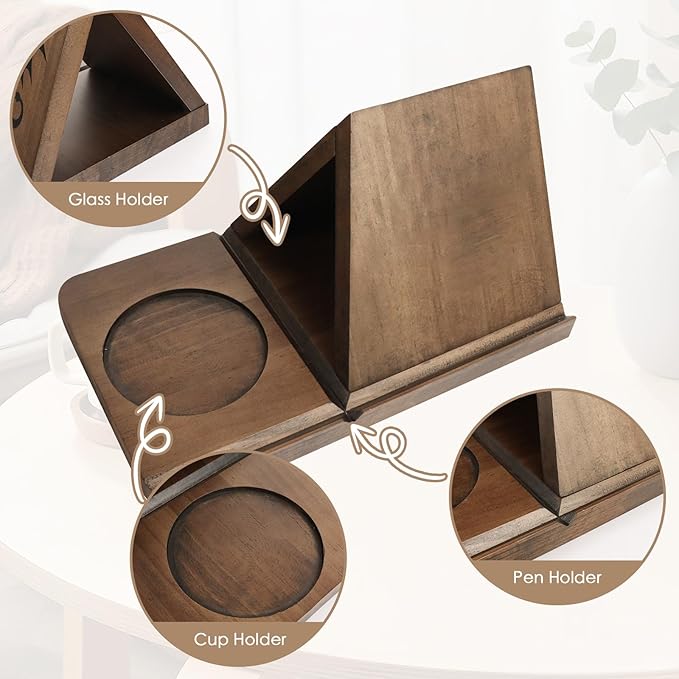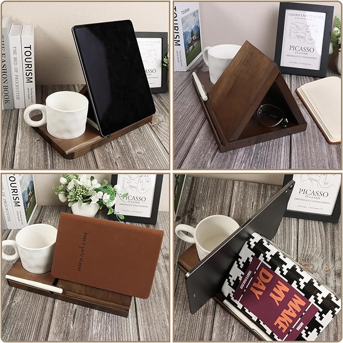 About This wood Multifunctional Bookrest and Storage: The product serves as a triangle bookshelf, ideal for tabletop decor and eliminating...