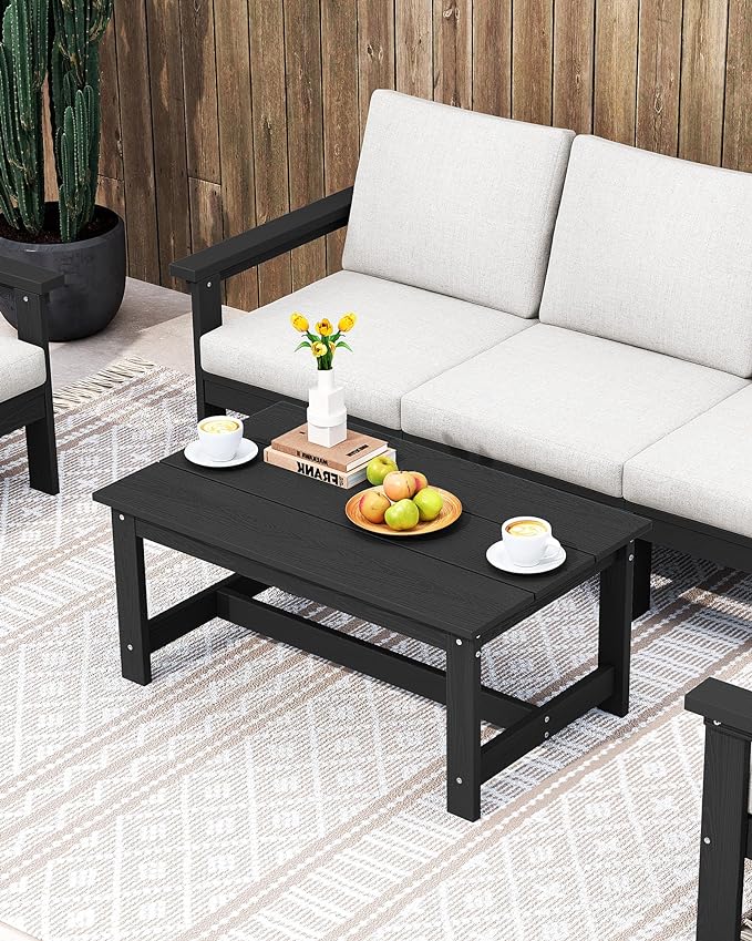 SERWALL HDPE Patio Furniture Set, 1 Pieces Outdoor Sectional Conversation Sofa Set, All Weather Patio Couch Furniture with Coffee Table for Balcony, Deck, Black