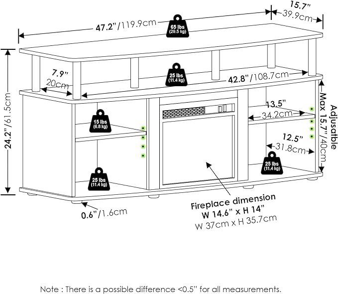 Furinno Jensen Open Shelving Storage Fireplace TV Entertainment Center for TV up to 55 Inch, Solid White/Black