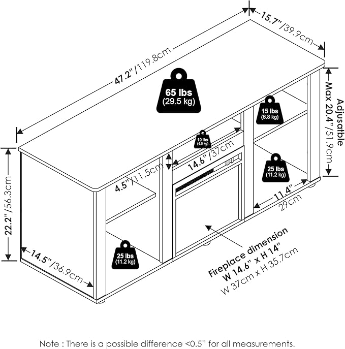 Furinno Jensen Fireplace TV Entertainment Center with Open Storage Compartment for TV up to 55 Inch, Solid White