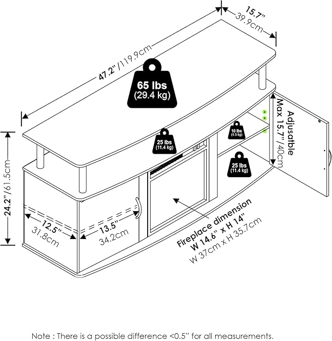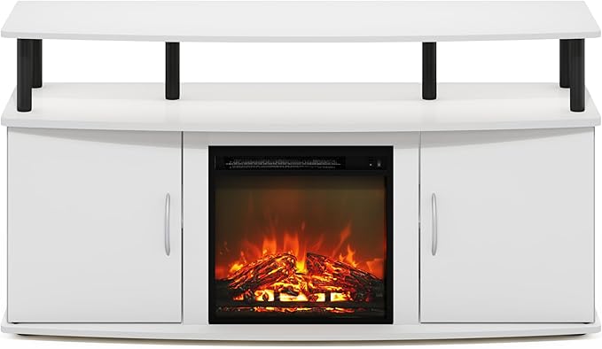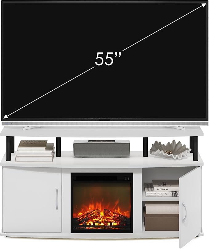 Furinno Jensen Living Room Fireplace TV Entertainment Center with Doors Storage Cabinet for TV up to 55 Inch, Solid White/Black