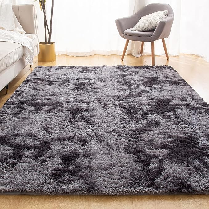 YOBATH Soft Shag Area Rug for Bedroom, 5x8 Feet Fluffy Shaggy Carpet for Living Room Nursery Playroom Baby Kids Girls Room Classroom, Fuzzy Plush Rug Room Decor, Tie-Dyed Dark Grey