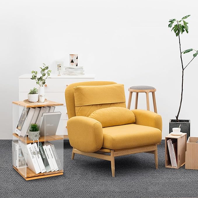 About This Durable Materials: Our 2-tier acrylic rotating bookshelf is made of natural bamboo with acrylic sides. Rotating bookshelves have...