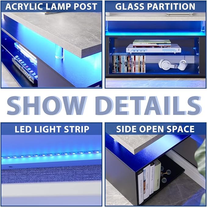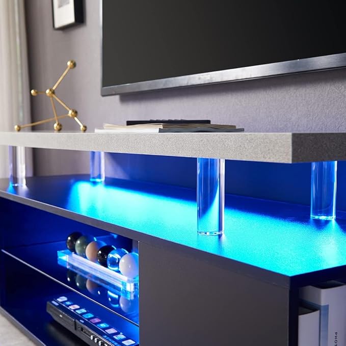 NicBex TV Stand for 65 Inch TV LED Gaming Entertainment Center Media Storage Console Table with Large Sliding Drawer & Side Cabinet for Living Room,Bedroom,51 Inch,Grey+Black