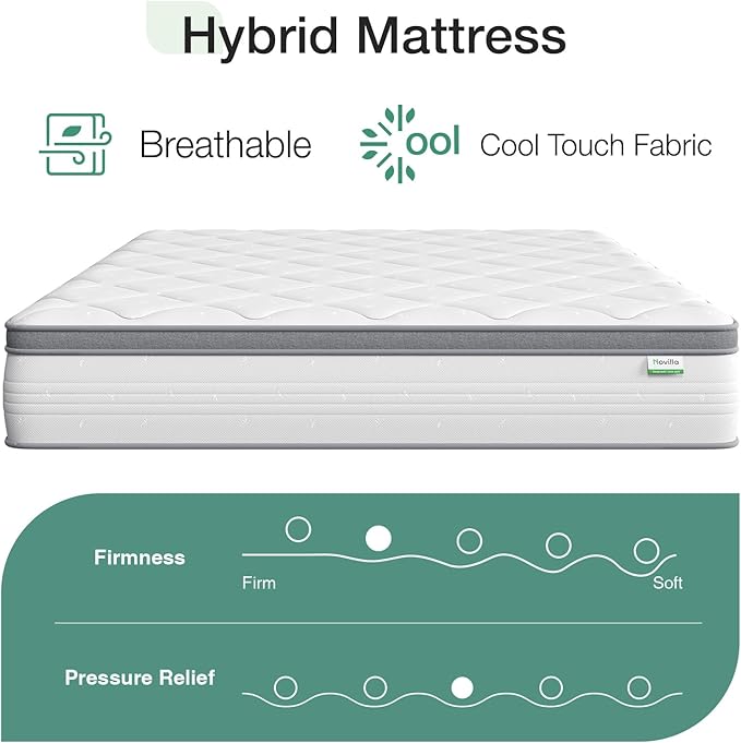 About This 【Hybrid construction enhances comfort】: Indulge in the ultimate sleep experience with the Novilla king size mattress, which combines...