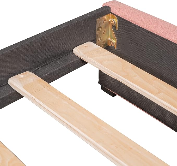 Twin Size Upholstered Daybed with 2 Storage Drawers,Solid Wood Sofa Bed Frame W/Linen Fabric Backrest,No Box Spring Needed,for Living Room Bedroom Apartment Pink