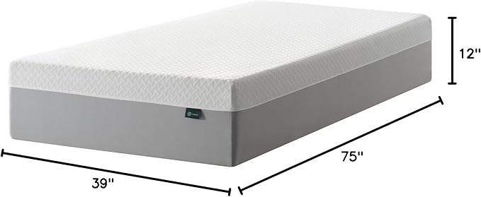 ZINUS 12 Inch Green Tea Essential Memory Foam Mattress [New Version], Twin, Fiberglass Free, Medium Feel, Breathable Airflow Memory Foam, Certified Safe Foams & Fabric, Mattress in A Box