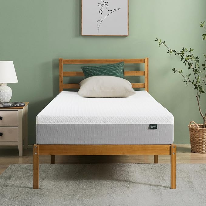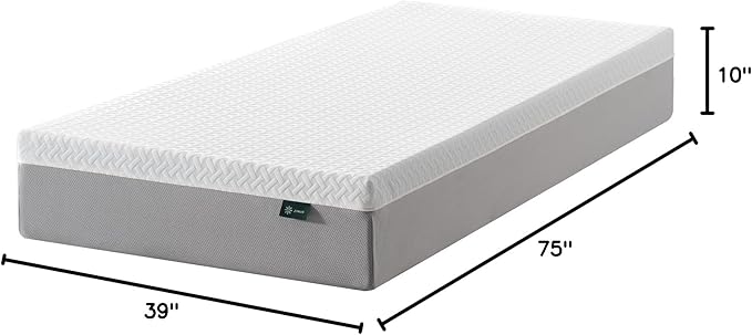 ZINUS 10 Inch Green Tea Essential Memory Foam Mattress [New Version], Twin, Fiberglass Free, Medium Feel, Breathable Airflow Memory Foam, Certified Safe Foams & Fabric, Mattress in A Box
