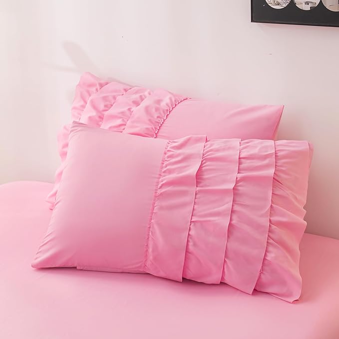 Pink Comforter Set Twin, 5-Piece Bed in a Bag Twin for Teen Girls, Pink Ruffle Bedding Set for Girls Kids, Teen Girls Bedding Sets,Princess Dress Comforter for All Season