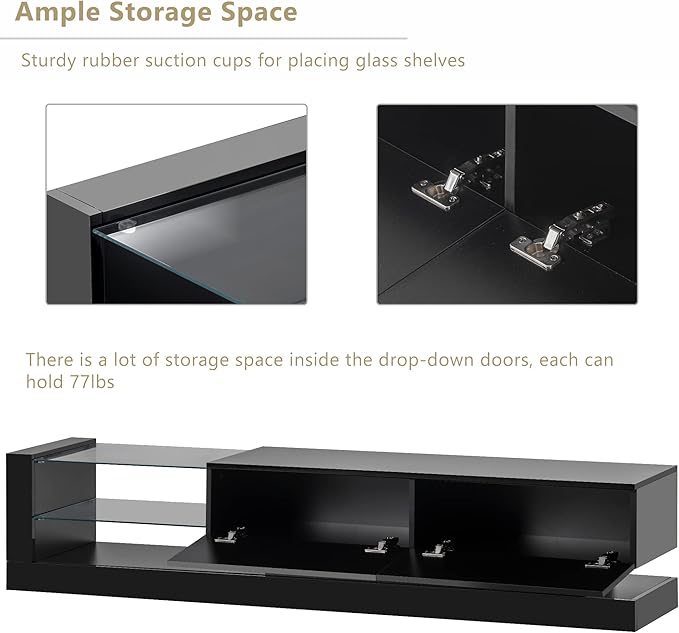 NicBex TV Stand for 75 Inch TV LED Entertainment Center Media Storage Console Table with 2 Media Storage Cabinets and 16-Color RGB LED for Living Room,Bedroom, 70.8 Inch,Black