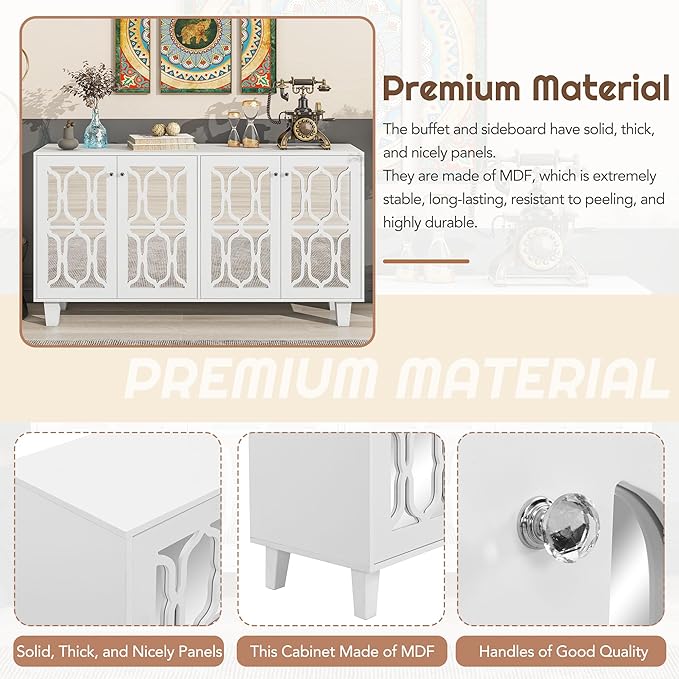 NicBex TV Stand for 65 Inch TV Modern TV Media Console Table with Adjustable Shelves, 4-Door Mirror Hollow-Carved,Entertainment Center with Storage for Living Room,63 Inch,White