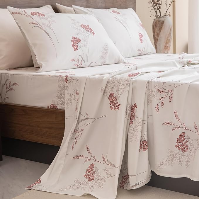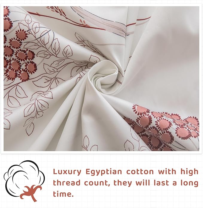 About This 4PCSs Egyptian Cotton Percale Sheets King Size - Include 1 pc aesthetic flower pattern flat sheet - 106"x102",...