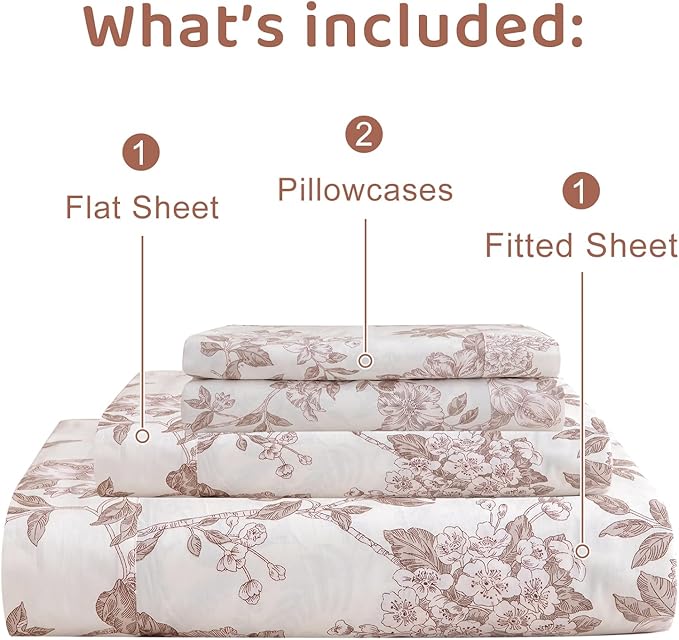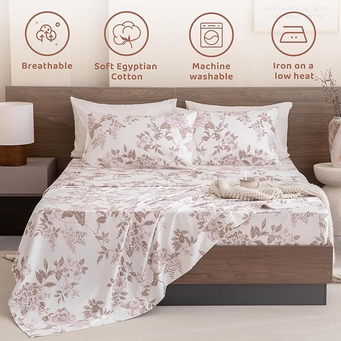 About This 4PCSs Egyptian Cotton Percale Sheets King Size - Include 1 pc rose flower pattern flat sheet - 106"x102",...