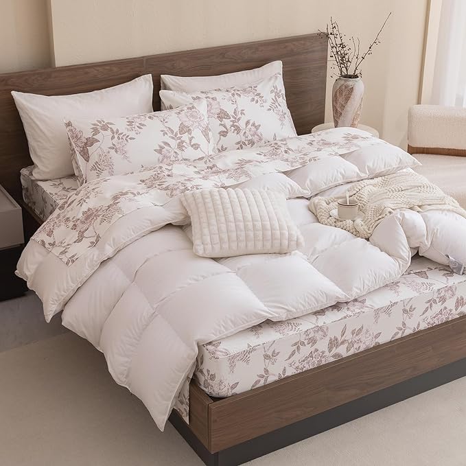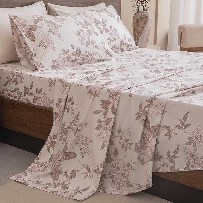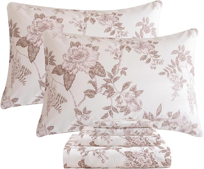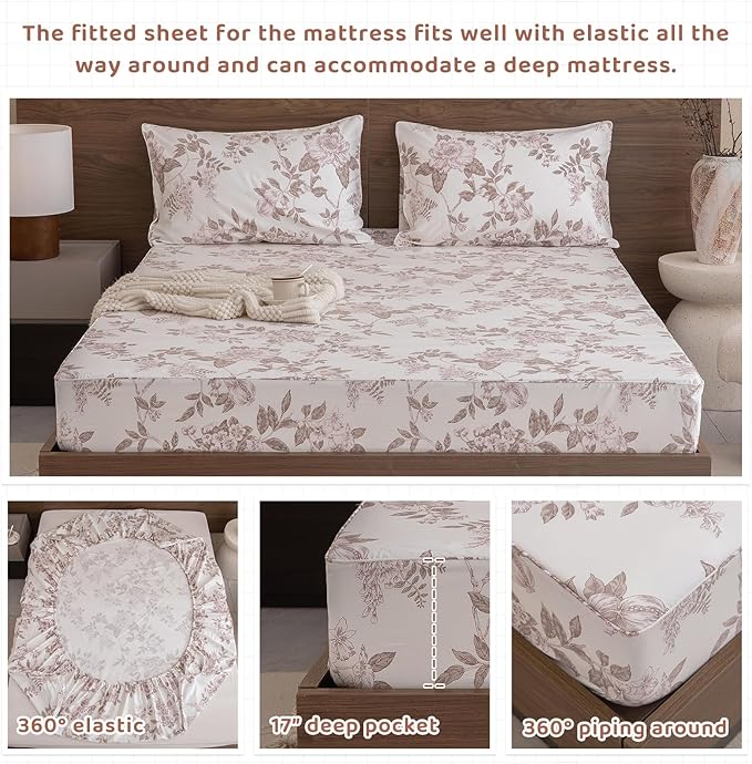 QSH Floral Egyptian Cotton Sheets King Size - Flower Bedding Sheets Botanical Pattern Printed Bedding King Size Bed Sheets 17.5" Extra Deep Pocket 4pcs