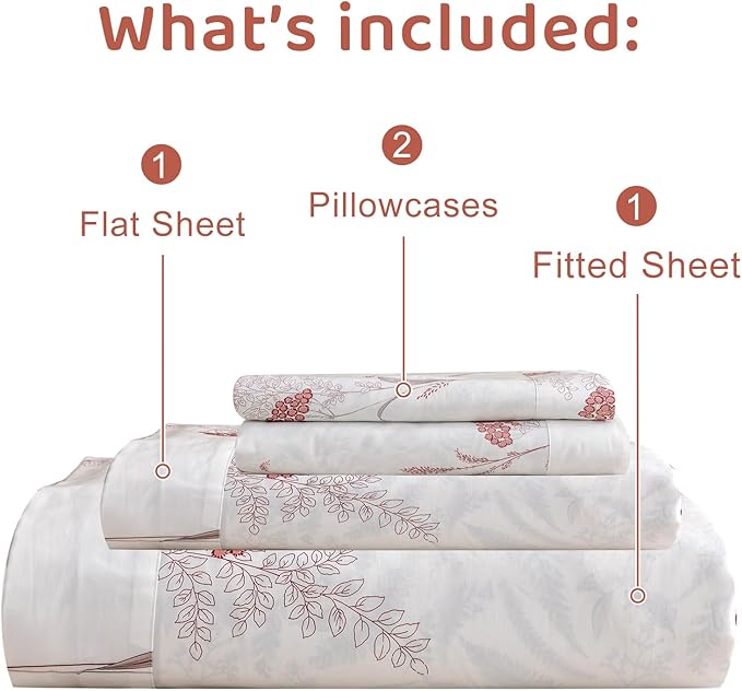 About This 4PCSs Queen Size Bed Sheet Set - Include 1 pc floral aesthetic flower pattern flat sheet - 90"x102",...