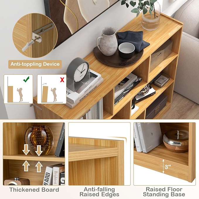 Giantex Wood 8 Cube Bookcase, Open Freestanding 3-Tier Bookshelf, Multipurpose Display Shelf for Living Room, Bedroom, Children's Playroom, Reading Room
