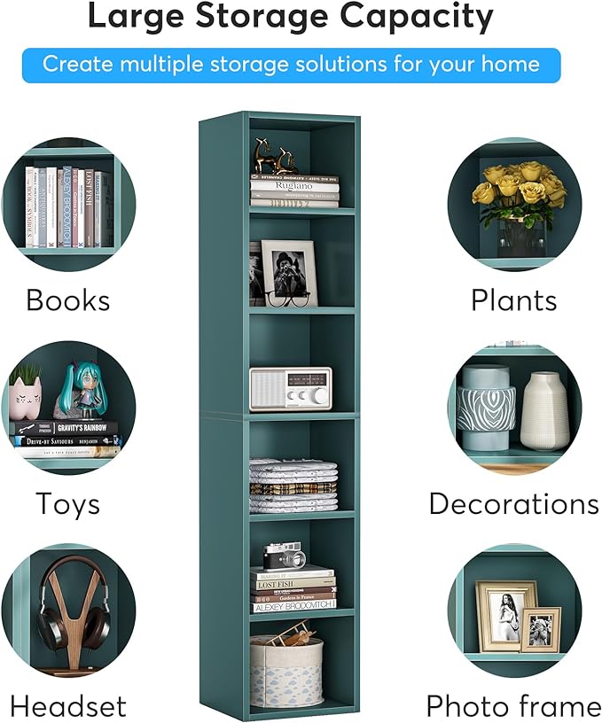 70.9 Inch Tall Narrow Bookcase, Corner Bookshelf 6 Tier Cube Display Shelf Storage Organizer for Small Space, Blue