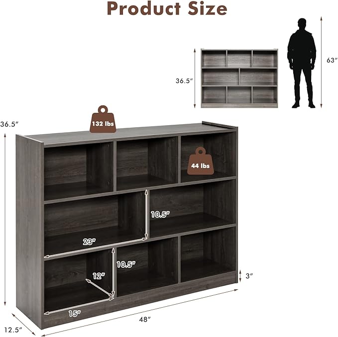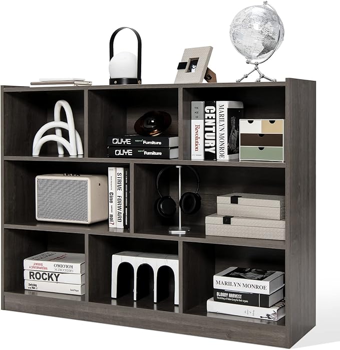 • Ample Storage Space: Designed as a three-tier unit with eight open shelf compartments, this cabinet allows books, CDs, magazines and collectibles to be efficiently sorted and stored, keeping the space well organized.