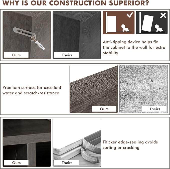 • Easy to Assemble and Clean: Comes with a detailed instruction guide, just follow the instructions and it will be easy to assemble. The surface of the cabinet is smooth and flat, just wipe with a damp cloth to remove stains.