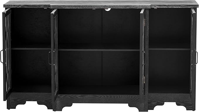 58" Retro Sideboard Glass Door with Curved Line Design,Wood Ample Storage Cabinet,W/Black Handle and Three Adjustable Shelves,for Dining Living Room Entryway