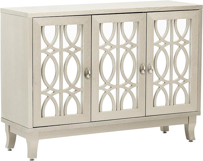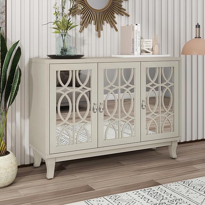 Multifunctional Sideboard with Glass, Vintage 3 Door Mirrored Buffet Cabinet,W/Silver Handle,Easy to Assemble,Console Table for Living Room Hallway Entryway,Champagne Gold, 47.2"