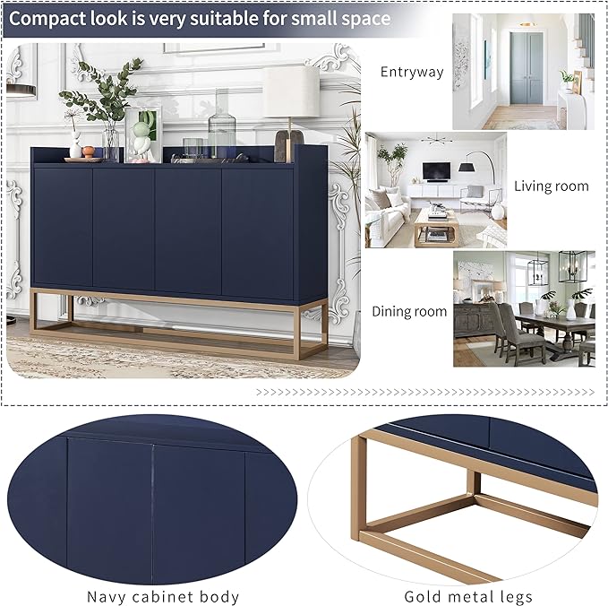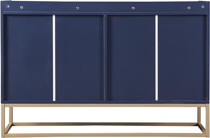 Sideboard Buffet Cabinet with Large Storage Space,Modern Particle Board Kitchen Console Table,W/ 4 Doors and Gold Metal Legs,Dining Room,Entryway,Navy, 47.2"