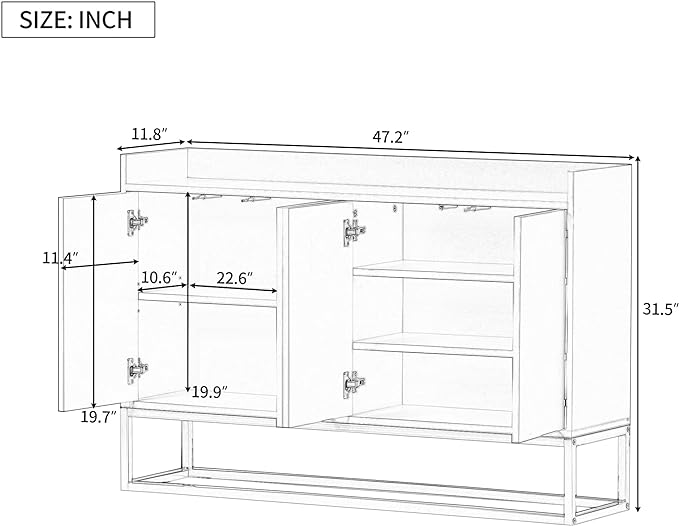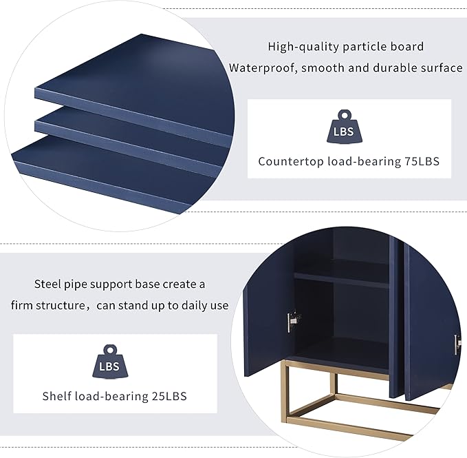 About This This sideboard buffet cabinet features a navy cabinet body with gold metal legs, compact look is very suitable...