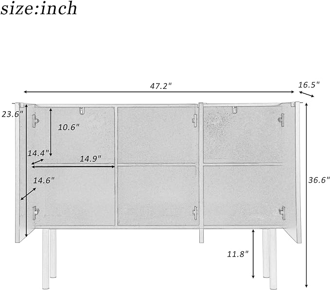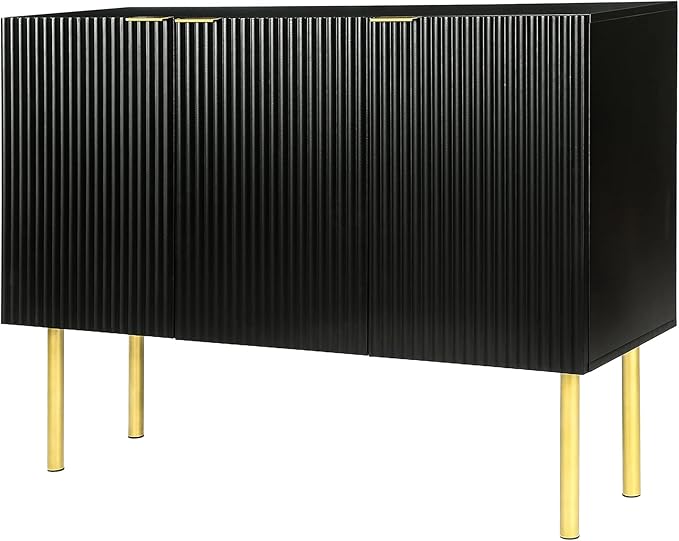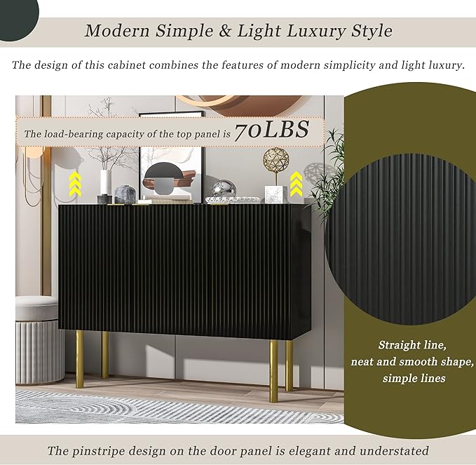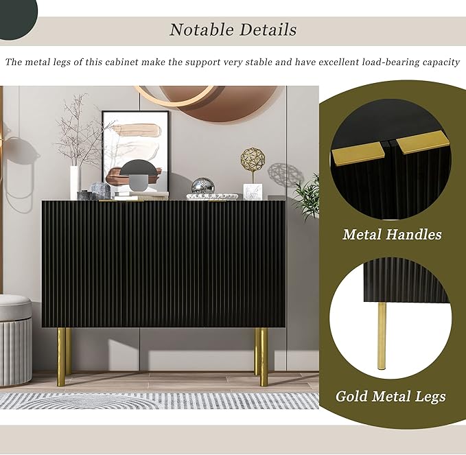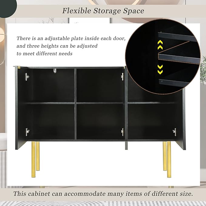 Modern Simple Sideboard with Particle Board & MDF,Luxury Style Buffet Cabinet,W/Gold Metal Legs and Handles,Adjustable Shelves,for Kitchen,Dining Room,Black, 47.2"
