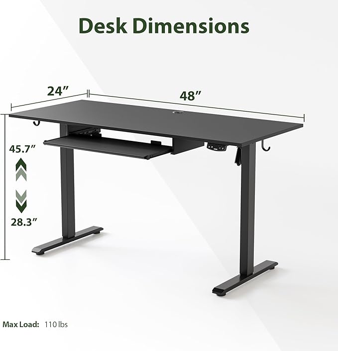 Height Adjustable Desk with Keyboard Tray, 48 x 24 Inches Electric Standing Desk, Stand up Computer Table with Memory Preset, Gaming Modern Lift Motorized Gaming Workstation, Black